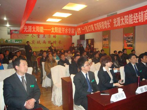 本次会议以“一个重点方略,实现两极增长”为主题,热水器营销事业部部长郭晖女士分析了公司良好的发展平台和发展优势,对当前太阳能行业现状及前景进行了缜密的解析,讲解了光源品牌的定位和行业的发展趋势。市场部经理侯利佳系统介绍了光源的发展史、行业地位,从行业完整的产业链到优越的产品性能等方面阐述了光源太阳能的产品优势,增强了经销商对光源太阳能产品的信心。会议安排了近2个小时的时间由安康银浩商贸有限公司总经理潘德银针对光源太阳能工程的产品进行了详细的分析和安装指导,与会经销商就太阳能单机、太阳能工程的优势和未来市场的运作等问题同公司人员进行了深入的沟通。