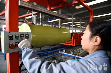 11月10日,河北光源太阳能科技有限公司工人在蓄热式智能电锅炉生产线上忙碌。