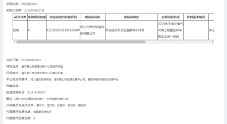喜报频传,河北光源太阳能科技有限公司,在2019年09月16日,2019年王官庄镇气代煤工程壁挂炉采购及安装项目的竞标中,凭借过硬的产品质量,扎实高效的工作作风,卓越的运作团队和良好的企业信誉,以绝对的优势顺利中标。