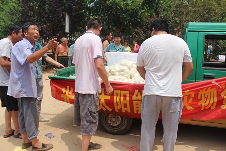 根据开发区管委会统一安排,辖区内企业对受灾村民在生活上进行对口支援。光源太阳能公司与其他几家企业支援景家屯村。其中光源公司为景家屯300名村民提供一日三餐,解决300口人的生活问题。