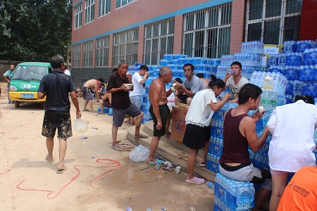 邢台经济开发区东汪镇景家屯村,是邢台7.19洪水侵袭的重点村之一。从7月19日晚断电断水至今,水电供应因施工难度大,至今仍未恢复。村民一日三餐,仅以矿泉水、方便面(干吃)充饥。