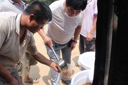 7月25日,是对口支援的第一天。光源公司职工食堂的炊事人员4点钟起床到菜市场进行采购,8点钟将早饭准时送到景家屯村。中午12时许,又将午饭准时送到村里。村民们排队打饭,一边吃着白面馒头,喝着香喷喷的大锅菜,一边夸赞光源公司饭菜做得香甜可口。他们说,几天了,终于吃上了热乎饭,感谢光源公司,感谢政府领导。